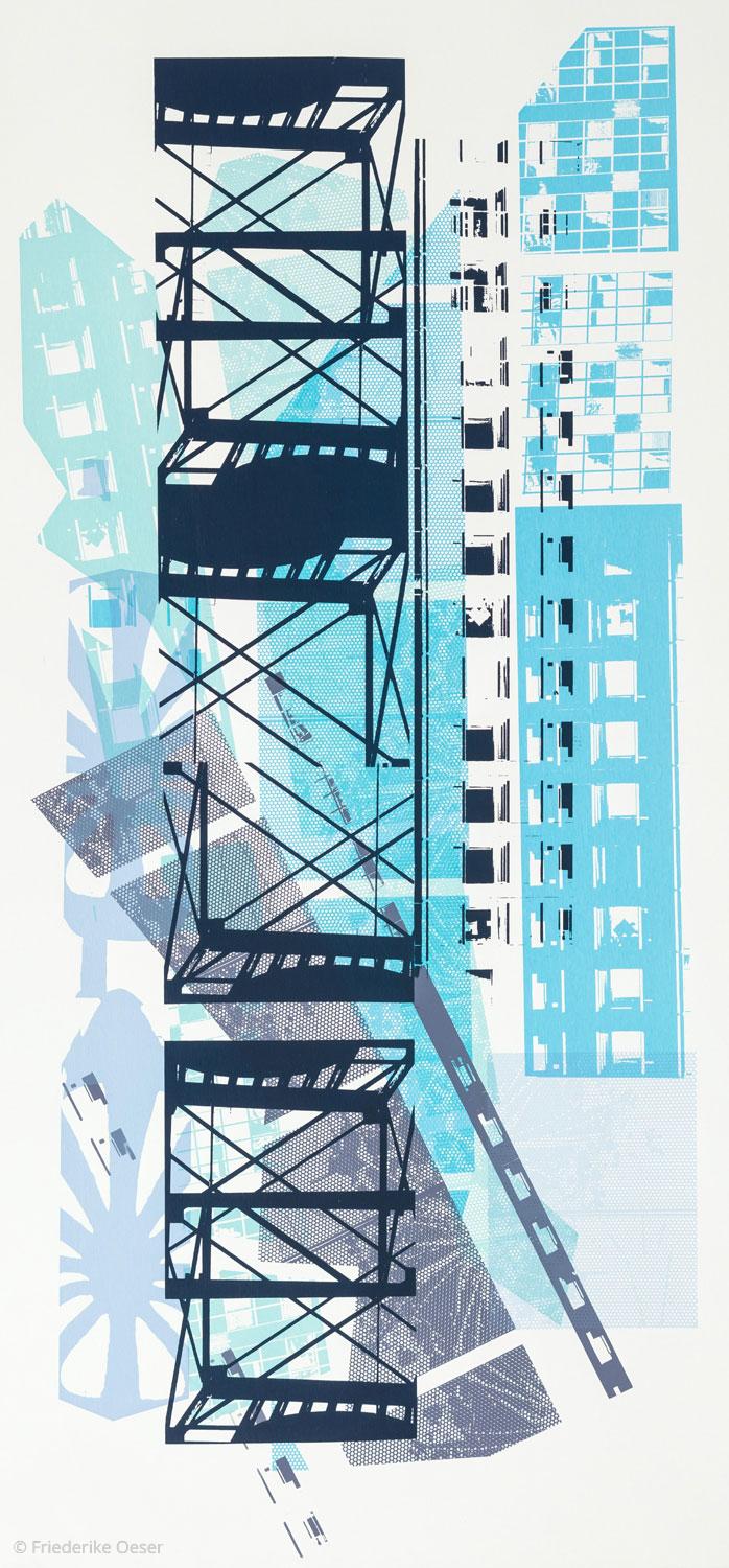 "It is interesting how an art work's meaning can change into a poignant message, reflecting the time in which we live. This work was inspired by what I saw around New York City in 2015, the year I started working on my "New York New York" series. At that time this painting had no special designation. But it has now become most relevant, like a conflict smoldering, ready to explode." Friederike Oeser 2020