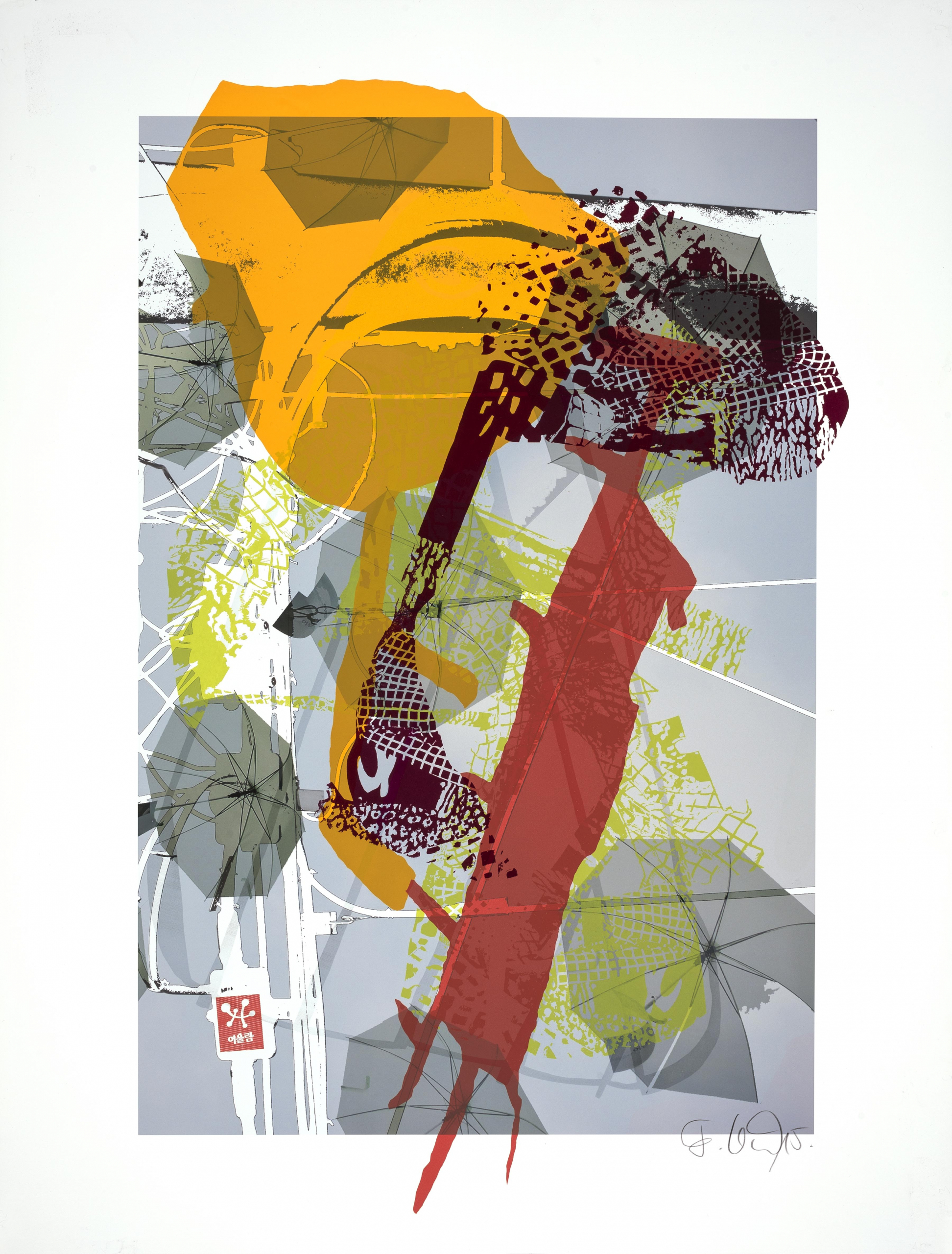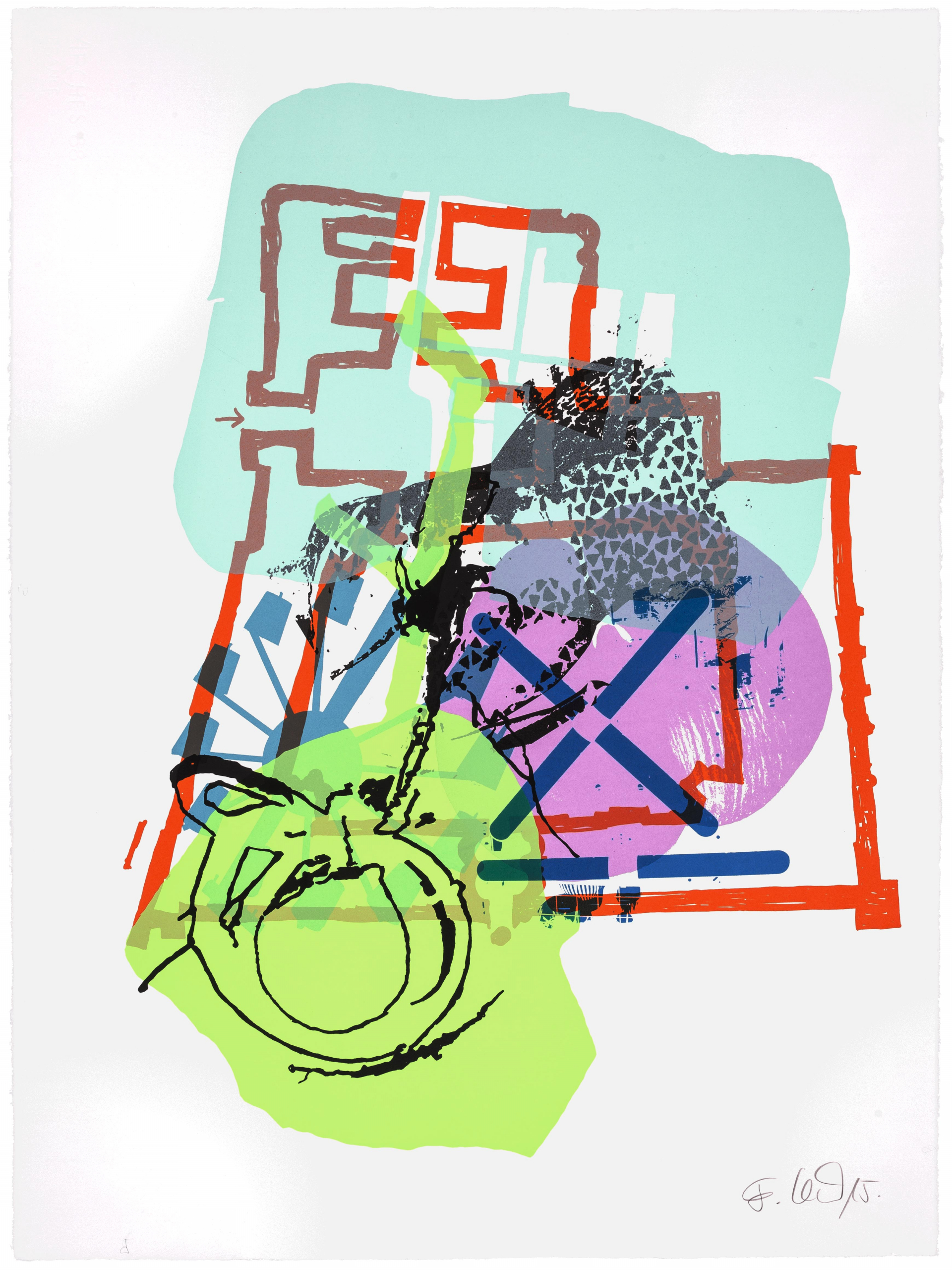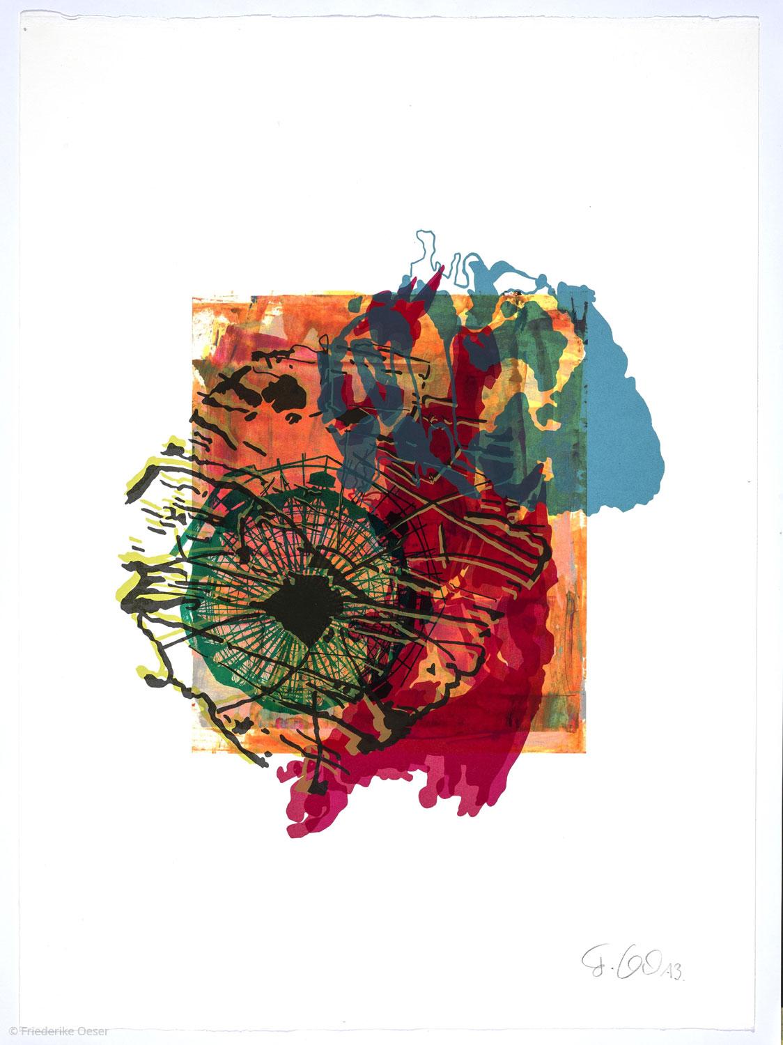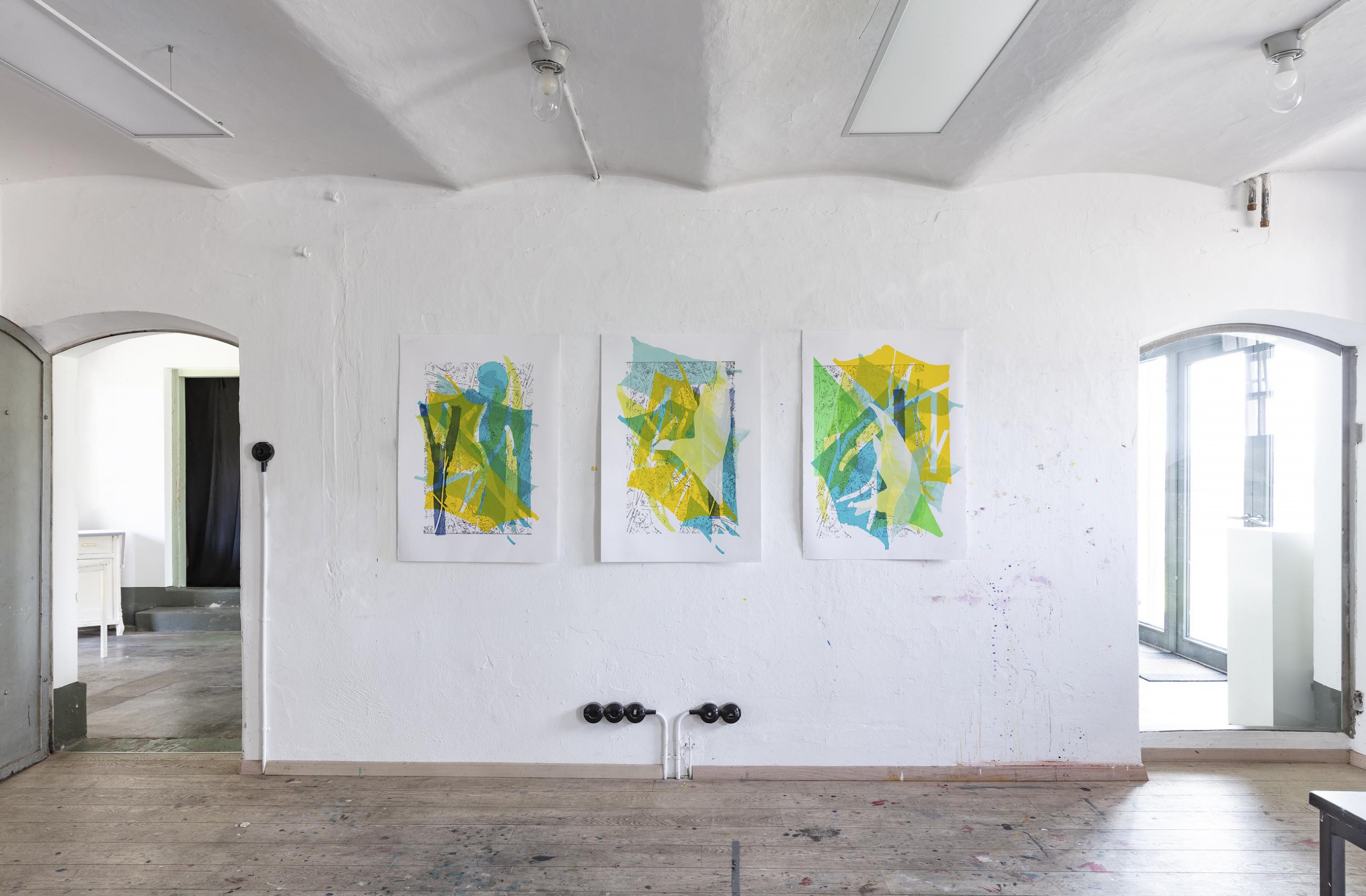 A painting on canvas or paper can take 50 to 200 steps, starting from draft to the final version. On average, I usually print four colors per day (with the help of my screen-printing Master Alexander Georg Fischer).
