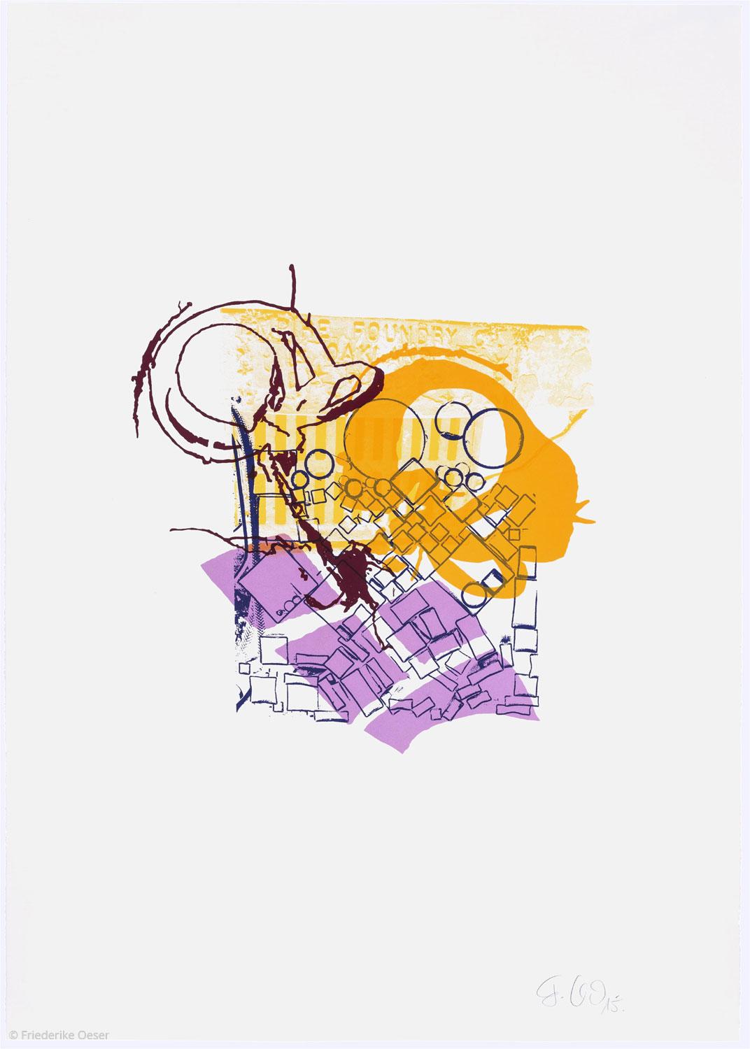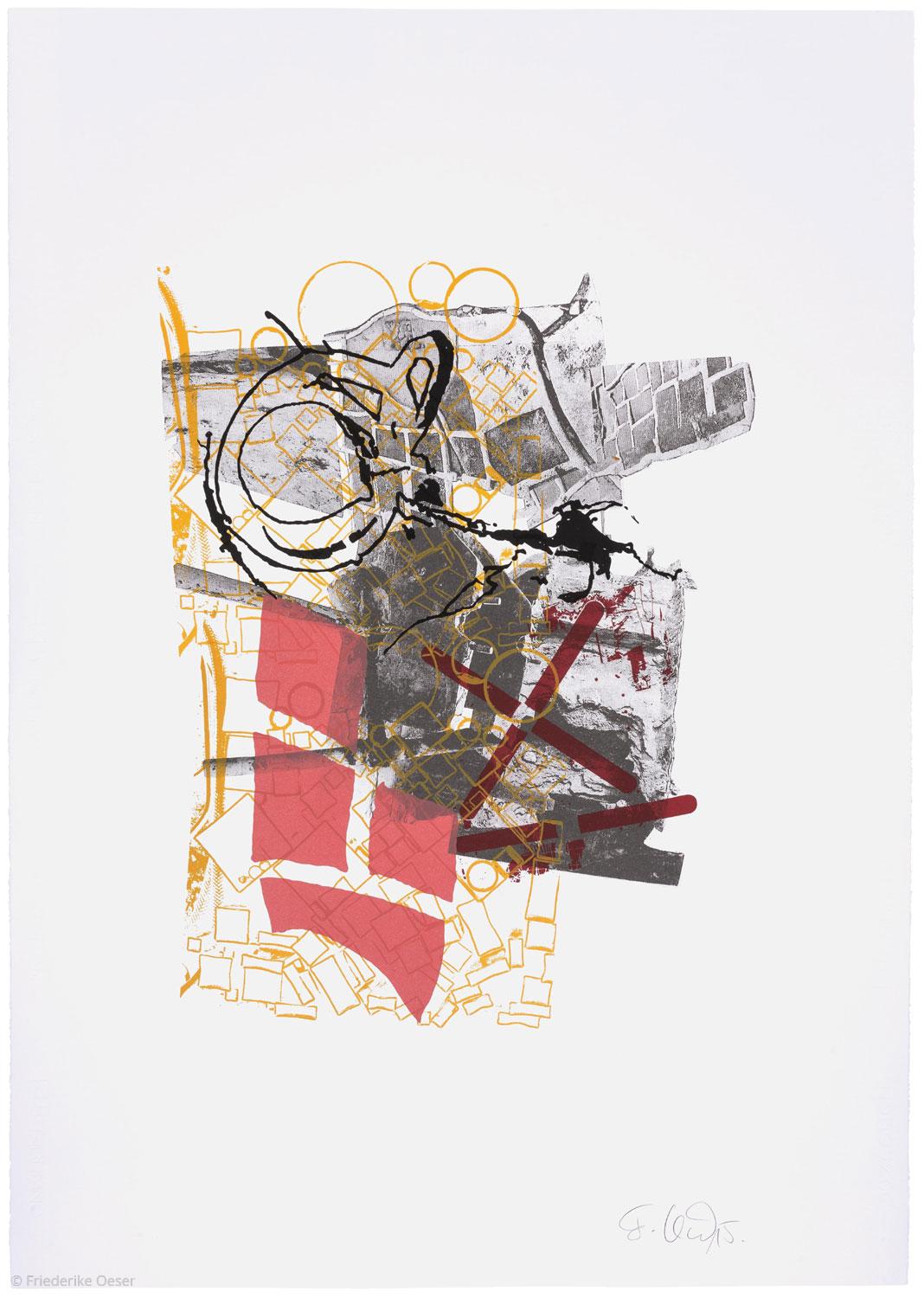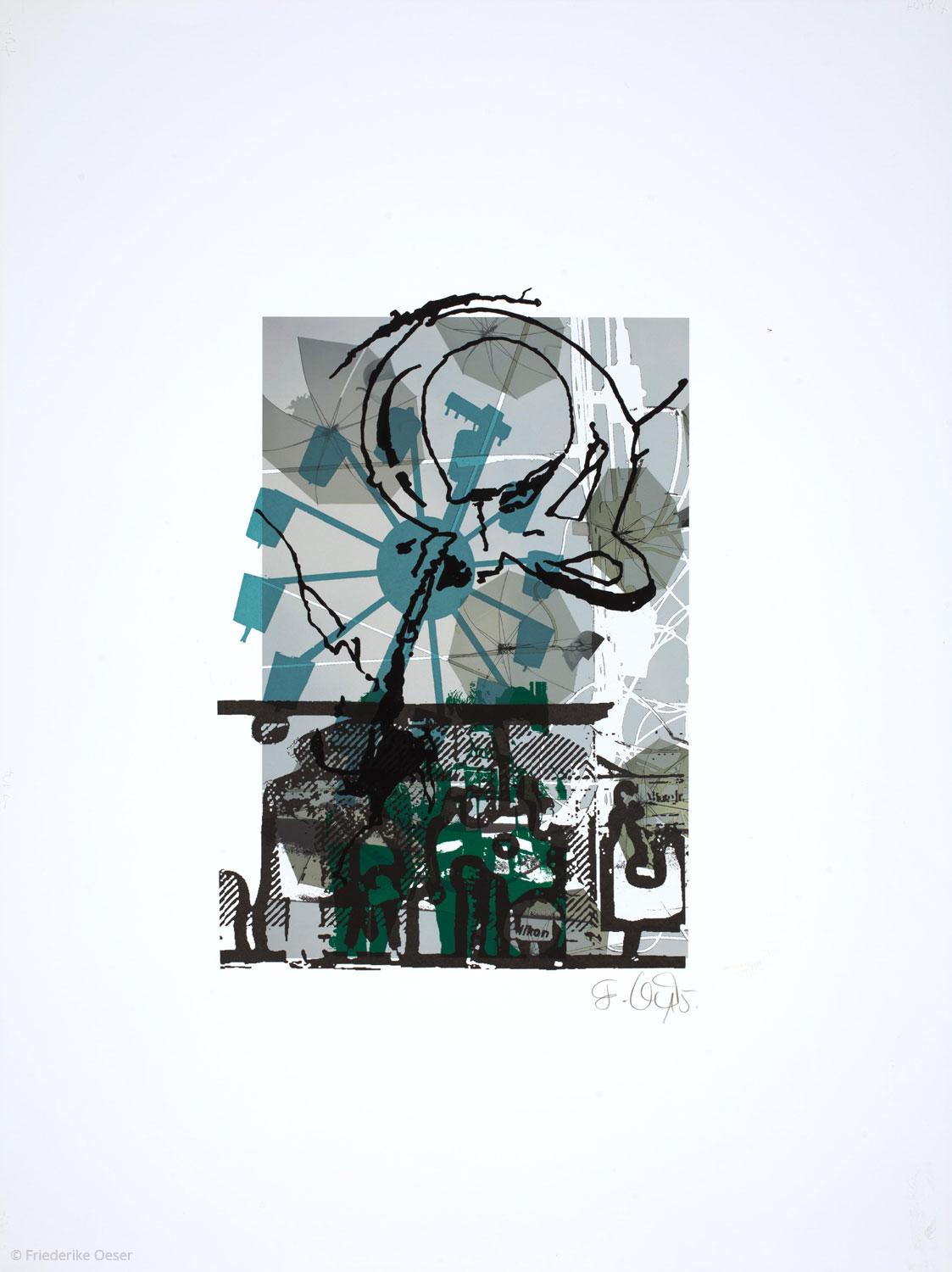 A painting on canvas or paper can take 50 to 200 steps, starting from draft to the final version. On average, I usually print four colors per day (with the help of my screen-printing Master Alexander Georg Fischer).