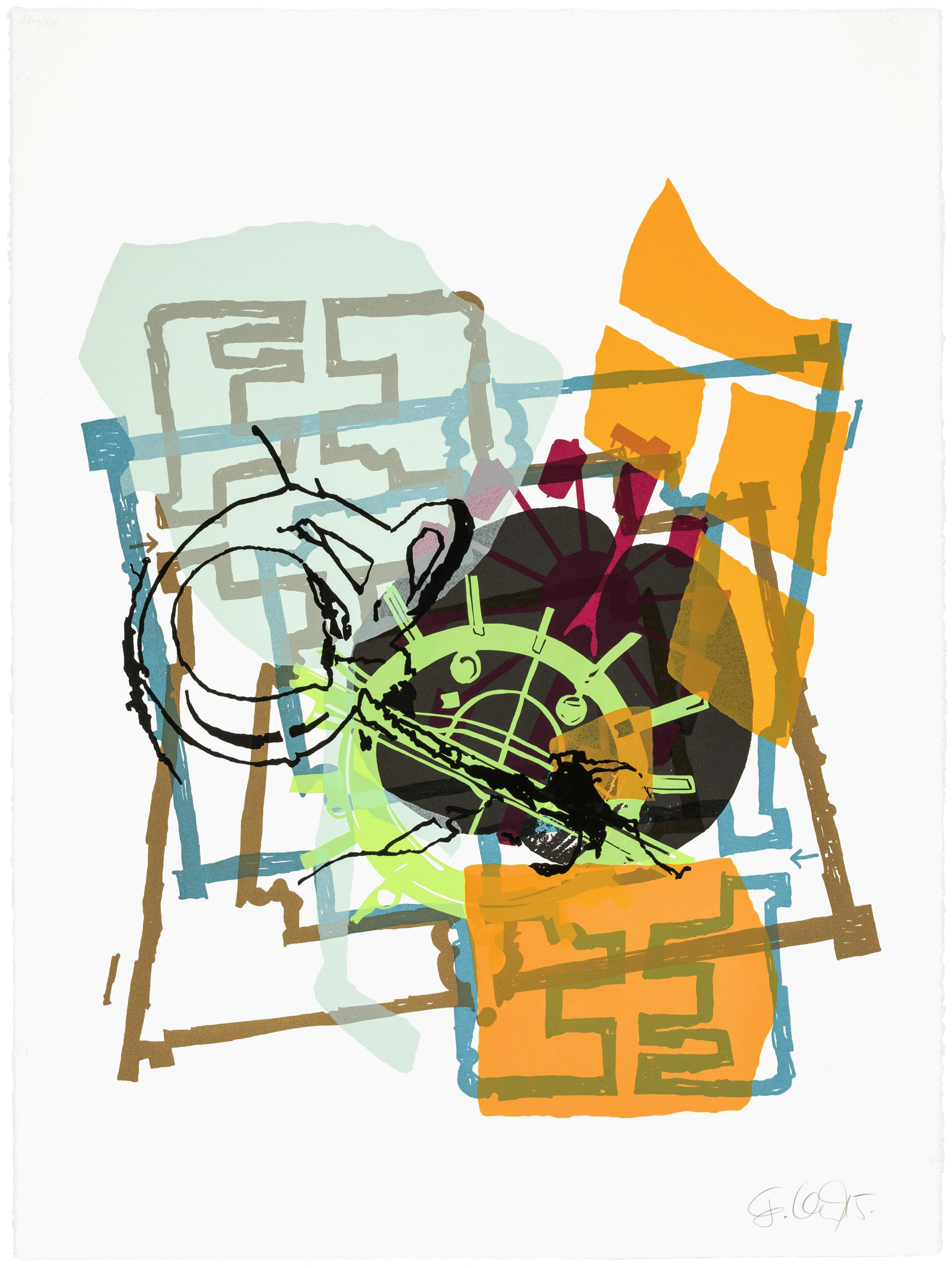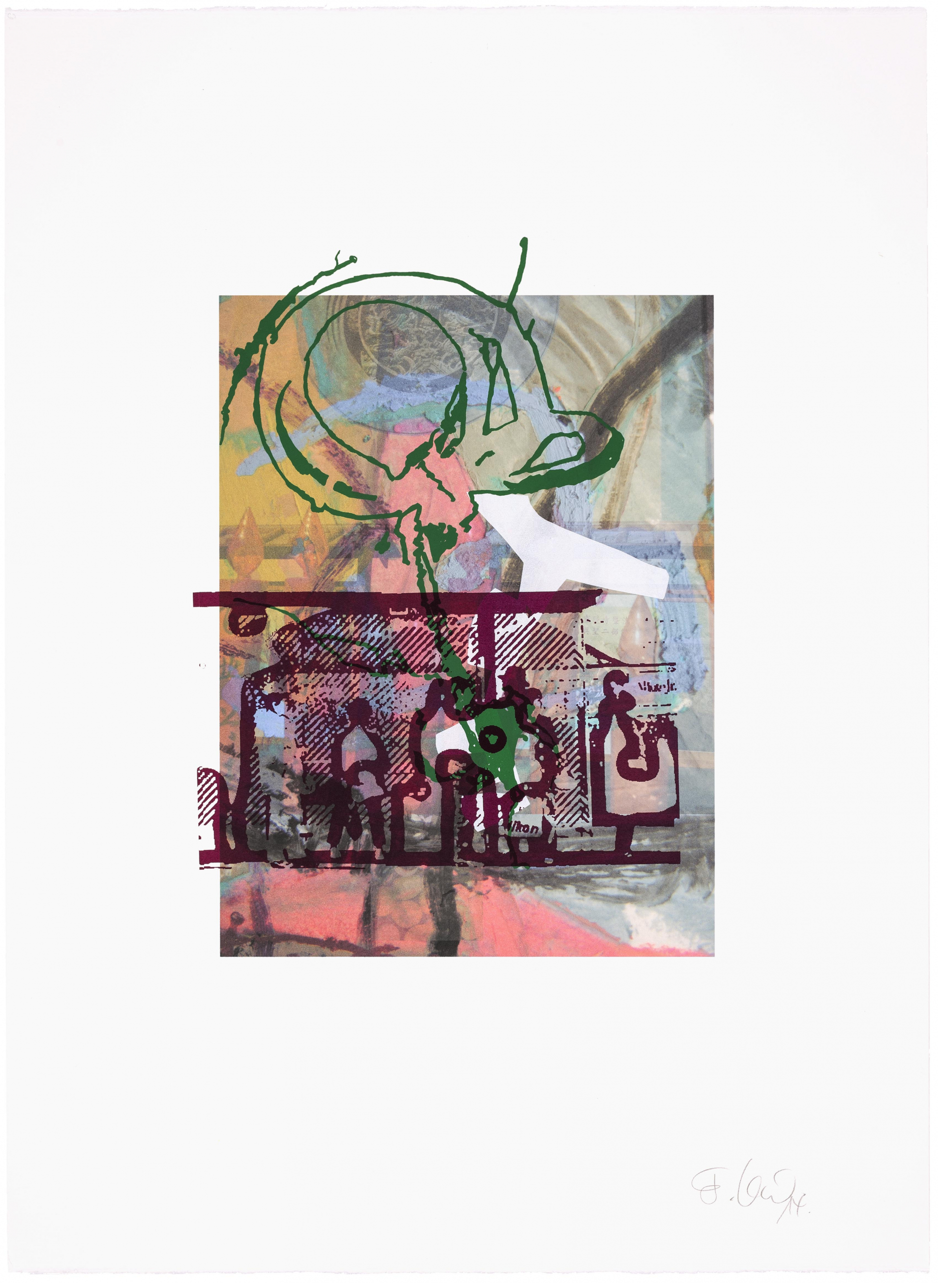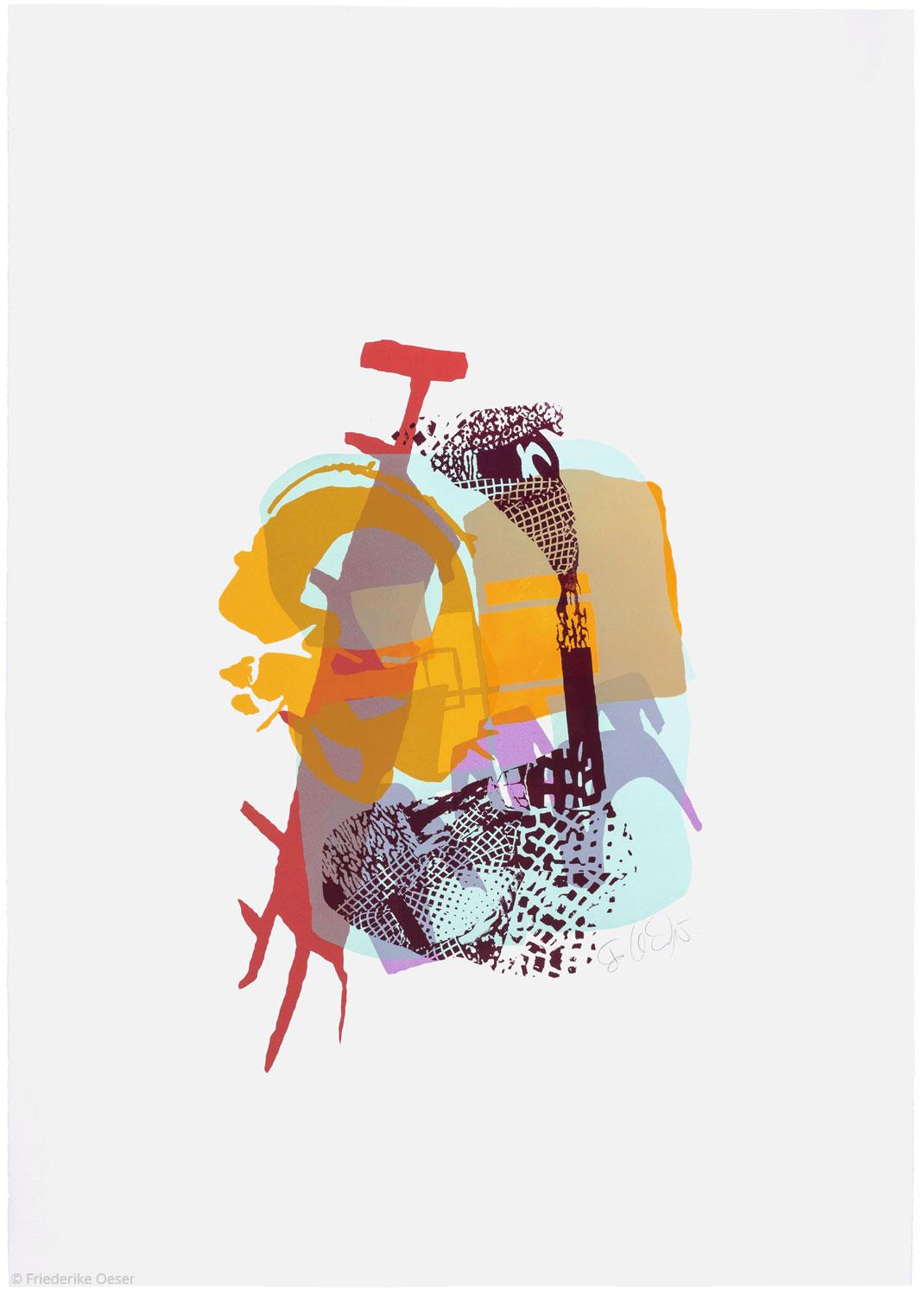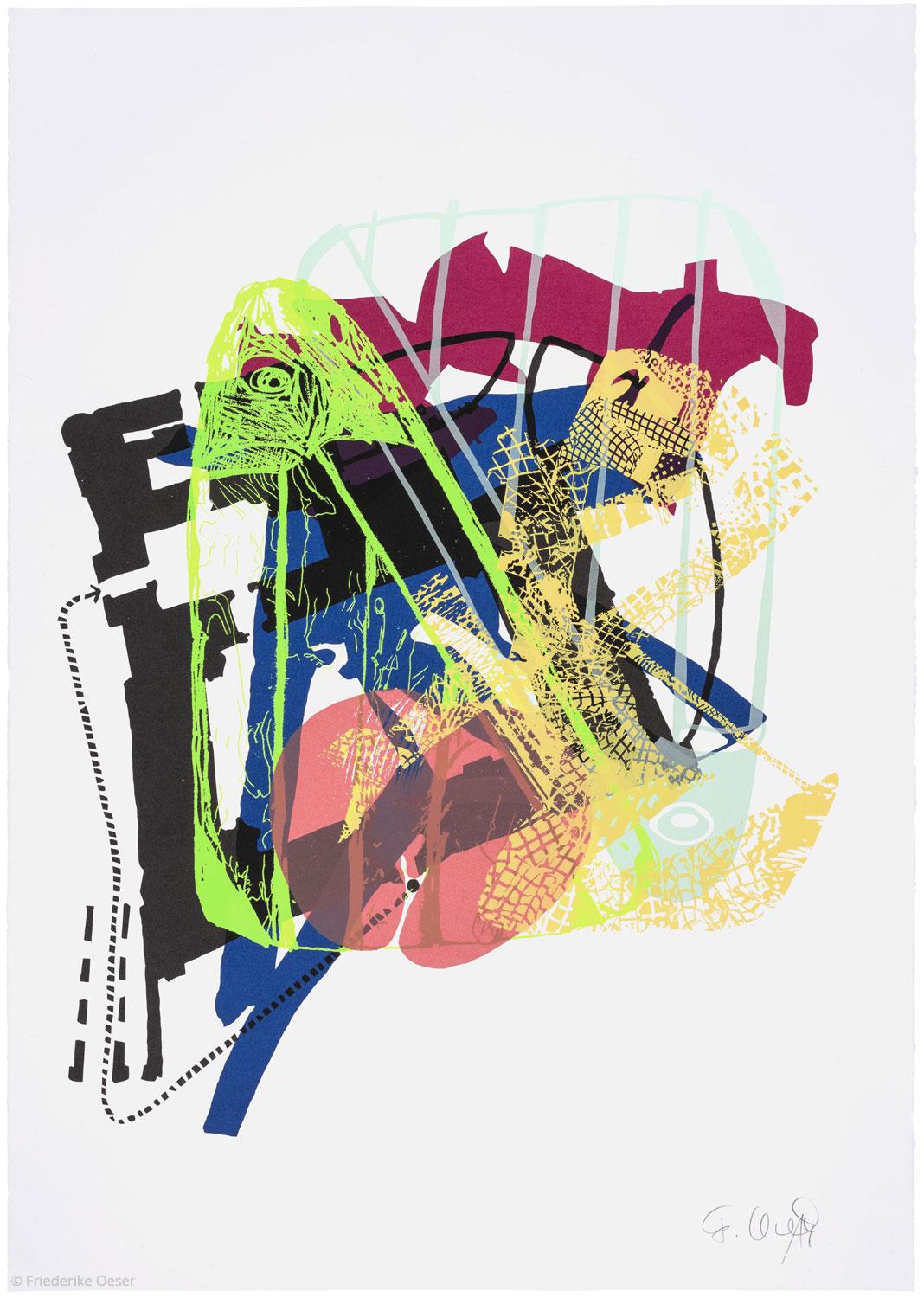 A painting on canvas or paper can take 50 to 200 steps, starting from draft to the final version. On average, I usually print four colors per day (with the help of my screen-printing Master Alexander Georg Fischer).